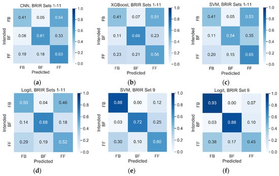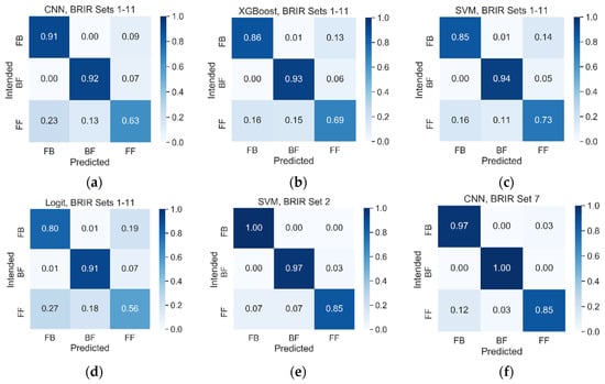 The confusion matrix, obtained after completing the above post-screening procedure, is presented in Figure 2f. In contrast to the matrices shown in the remaining panels of that figure, distinct maxima along the diagonal line seem to emerge.