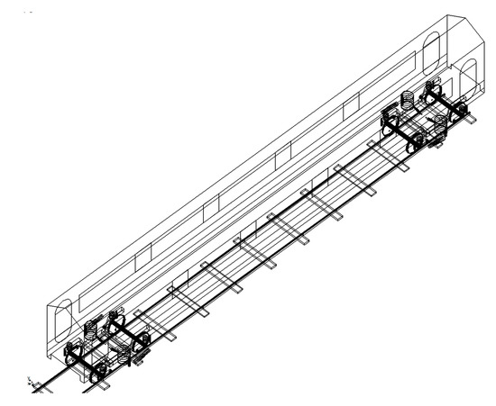 The structural difference between locomotive and passenger is that the former bogie is equipped with traction motor. For traction motor, there are three standard suspension modes: axle suspension, frame suspension and body suspension. Theoretically, each traction motor can be regarded as a separate rigid body, and there are significant differences between locomotive models with different motor suspension modes. However, the previous research shows that the vibration characteristics of the motor have little influence on the dynamic performance of the whole locomotive system, and the vibration of the motor can be ignored in the study of the whole locomotive system dynamics. Therefore, motor vibration is not considered in locomotive modeling.