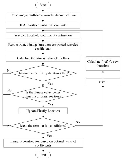 - Threshold initialization. Initializing the IFA threshold and initializing the firefly position (wavelet threshold).
