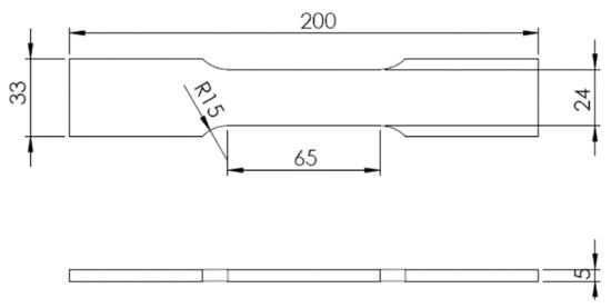 The schematic diagram of test specimen (aluminum6061-T6, mm).