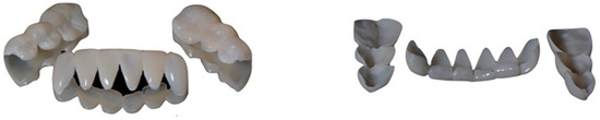 - Rosentritt, M.; Raab, P.; Hahnel, S.; Stöckle, M.; Preis, V. In-vitro performance of CAD/CAM-fabricated implant-supported temporary crowns. Clin. Oral Investig. 2017, 21, 2581–2587. [Google Scholar] [CrossRef]