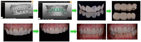 - Cattoni, F.; Mastrangelo, F.; Gherlone, E.F.; Gastaldi, G. A new total digital smile planning technique (3D-DSP) to fabricate CAD-CAM mockups for esthetic crowns and veneers. Int. J. Dent. 2016, 2016, 1–5. [Google Scholar] [CrossRef]