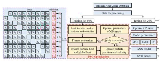 In recent years, artificial intelligence (AI) technology has developed very rapidly [22,23]. Some new methods such as Gaussian process (GP) were proposed, and the performance of that method was verified by many successful applications [24,25,26,27,28]. Although some artificial intelligence models were applied in the roadways broken rock zone (BRZ) prediction, the application of the Gaussian process (GP) was not analyzed, the effect of various factors on the broken rock zone thickness (BRZT) was also not conducted. Hence, the Gaussian process (GP) method was selected to predict the broken rock zone thickness (BRZT) in this study, the PSO algorithm was utilized to search the optimal hyper-parameter combination for optimal predictive performance, and a sensitivity analysis was carried out to find the most sensitive factor in the present paper.