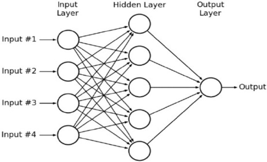where ∫() is the activation function, xh is hidden layer node activation, and who is the interconnection between the hidden layer node and the output layer node. For example, the MLP function can be seen in Figure 1 [54]: