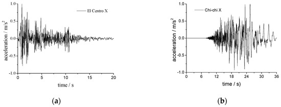 Longitudinal test seismic wave: (a) El Centro wave, (b) Chi-chi wave.
