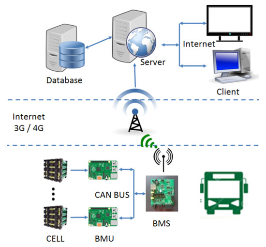 The biggest difference between electric buses and traditional diesel buses is the vehicle’s power system. An electric bus, driven by electrical energy, replaces the traditional diesel engine with a driving motor that is powered by a battery pack. The speed and torque of the driving motor are controlled by the motor controller. In the past, diesel buses used on-board diagnostics (OBD) to collect vehicle driving data via transmission cables or Bluetooth. Nowadays, electric buses perform management functions such as sensor data collection, charge/discharge control, and state of charge (SOC) estimation using a battery management system (BMS), and collect vehicle driving data through mobile networks [7]. To ensure good battery performance and extended battery life, electric buses must have their batteries properly managed and controlled [8]. Therefore, BMS has become a core technology for electric buses and, in recent years, has witnessed great improvements in the reliability of data collection, accuracy of SOC estimation, and monitoring and management of the electric current to prevent battery damages caused by voltage overload [9]. The function of BMS is to monitor the operating conditions of vehicle batteries to ensure driving safety. With this system, the batteries are not damaged, do have their service life reduced, or, under extreme conditions do not cause accidental explosions or fires that endanger safety. The battery represents the largest cost of an electric vehicles [10]. Management via the effective use of the data collected by BMS enables the vehicle operation to optimize benefits.