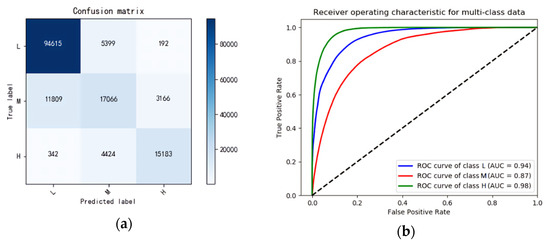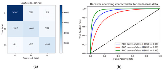 (a) Confusion matrix of the random forest; (b) ROC curves of the random forest.