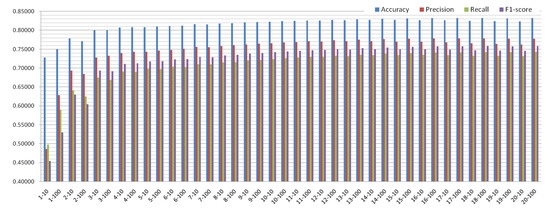 The model training is explained in Algorithm 1. We can see that our training strategy follows the manner of cross-validation that is a statistical analysis method used to check the performance of the classifier. This method evenly splits the training set into K folds, among which the Kth fold is used as the validation set and the remaining K-1 folds are used as the training set. After K training iterations, the average score of K iterations is used as the validation score. The scoring method combines grid search and cross-validation and executes different parameter combinations in sequence, thus, obtaining all the scores. The parameter combination that scores the highest was regarded to be the optimal model. The purpose of this scoring method is to reduce overfitting a single training set, and thereby obtain a reliable and stable model.