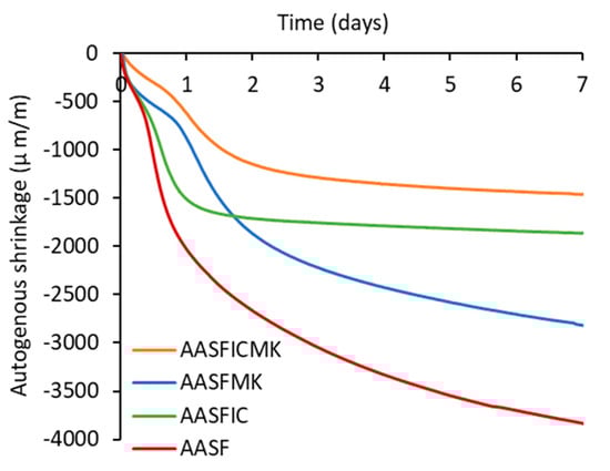 - Li, Z.; Nedeljković, M.; Chen, B.; Ye, G. Mitigating the autogenous shrinkage of alkali-activated slag by metakaolin. Cem. Concr. Res. 2019, 122, 30–41. [Google Scholar] [CrossRef]