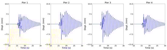 In recent years, seismic activities have sharply increased around the world [1]. The increase in the strength and number of seismic activities requires predicting the seismic performance of structures to ensure their stability during earthquakes [2,3,4]. The seismic performance of a structure depends on the characteristics of ground motion and the structural elements of the structure. Single-degree-of-freedom (SDOF) structures have a relatively small number of factors to account for in the response of the structures in an earthquake [5]. On the other hand, the seismic response of multi-degree-of-freedom (MDOF) structures, which are composed of various structural elements, cannot be easily evaluated. This is because MDOF structures are not dominated by a specific factor in seismic analysis [6,7]. Furthermore, the nonlinear behavior of materials and components, which would occur under an earthquake load, makes predicting the seismic response of MDOF structures more difficult [8]. The seismic response of a structure is also affected by the characteristics of ground motion [9,10]. Therefore, for bridges composed of various structural components, such as piers, bearings, and girders, this study examined the effects of ground motion and aspect ratio on the seismic performance of a bridge structure.