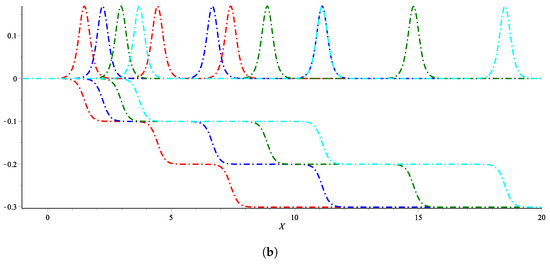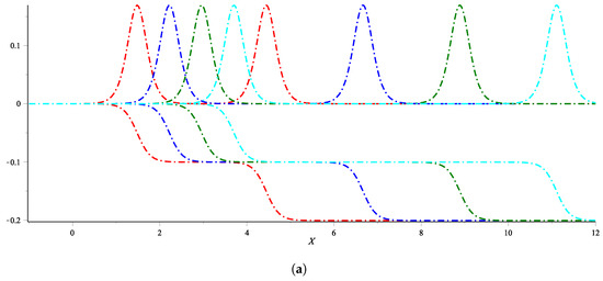 Before determining the useful N-shock wave solution of Equation (18), one first needs to transform Equation (18) to the well-established standard type Burgers equation by using suitable variables transformation. To do so, one can easily convert Equation (18) to the following standard type Burgers equation by considering the transforms and into account,