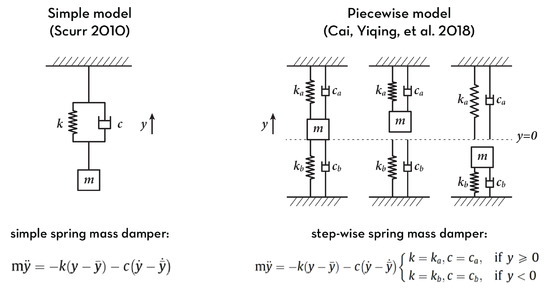 Diagrams of two precedent spring mass damper breast models.