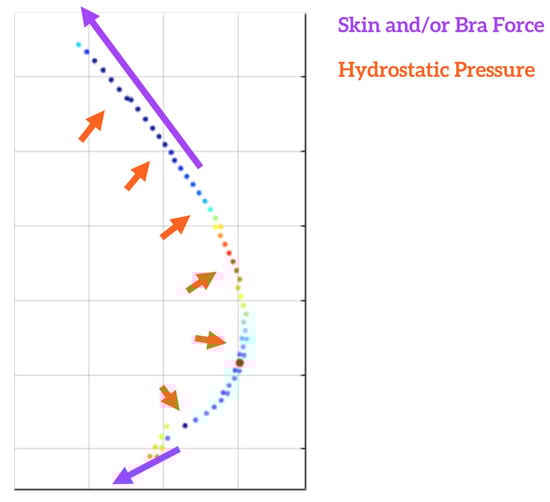 Visualization of vector loads mapped to bra from breasts.