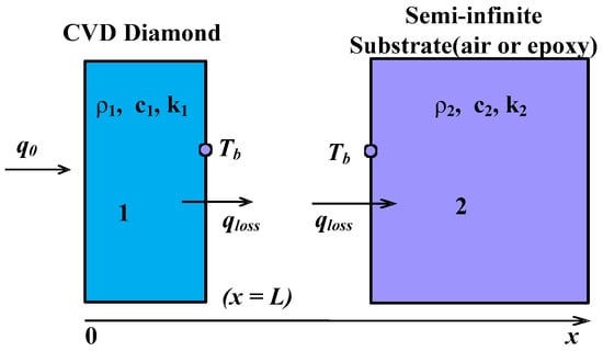 The heat conduction equation for a two-layer semi-infinite system as shown in Figure 7 is defined as