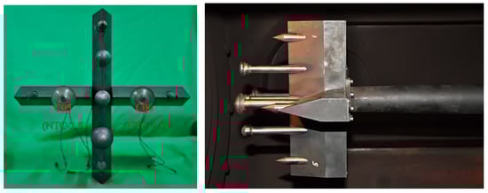 For the R20 mm sphere model, only two NTC-2.5 calorimeters (No. C05–C06) were installed, as shown in Figure 12. The test model was placed 50 mm downstream of the open end of the driven tube to avoid disturbances caused by the interaction between the detached shock wave and the inside wall of the tube to the flow field around the test model.
