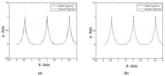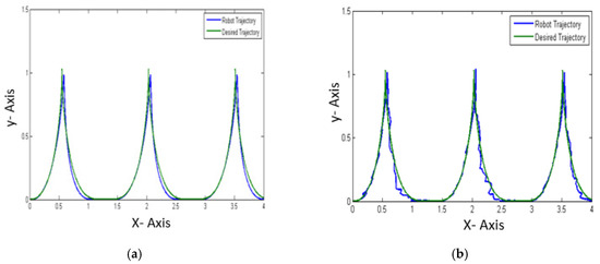 The controller used is of the Takagi–Sugeno type and is formed by nine fuzzy rules that govern the trajectory of the robot based on the controller. Table 7 contains more detail of these fuzzy rules. The Sugeno coefficients of this controller are presented in Table 8.