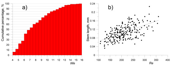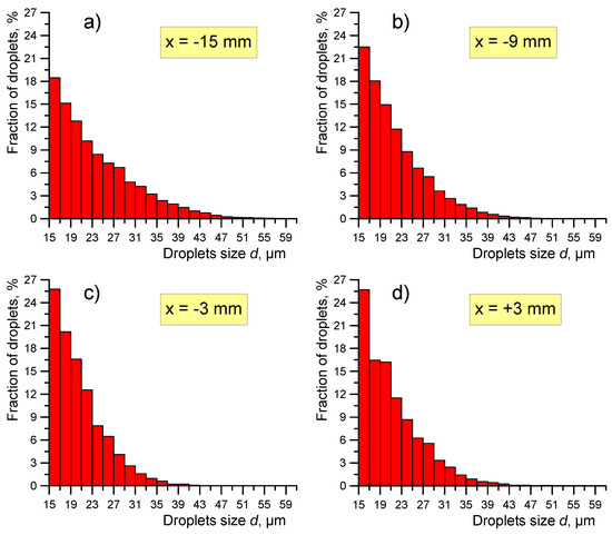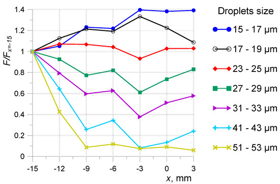Figure 5). As the droplets’ visualization region’s transverse size was quite small, about 3.5 mm, and was always centered at the axis of symmetry of the nozzle, the velocity and We data at the axis were used as a reference for all of the considerations about droplets behavior.