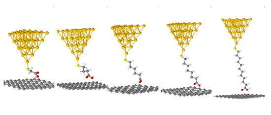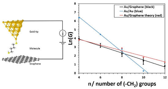 - Martin, S.; Manrique, D.Z.; Garcia-Suarez, V.M.; Haiss, W.; Higgins, S.J.; Lambert, C.J.; Nichols, R.J. Adverse effects of asymmetric contacts on single molecule conductances of HS(CH2)n COOH in nanoelectrical junctions. Nanotechnology 2009, 20, 125203. [Google Scholar] [CrossRef] [PubMed]