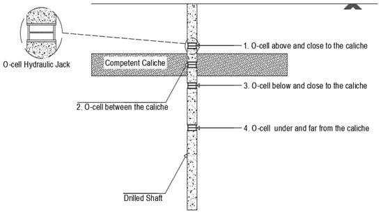 O-cell hydraulic jack location with respect to the existing competent caliche layer scenarios.