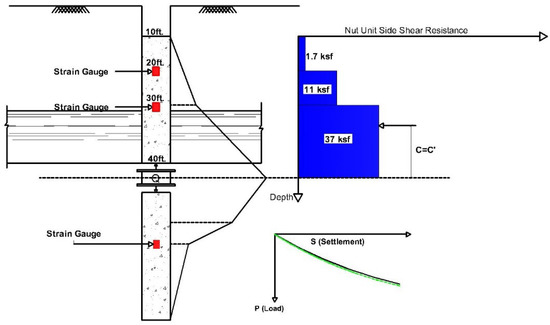 Conventional design methods for measuring the bearing capacity of drilled shafts are mainly developed for soil profiles in the absence of strong cemented layers, such as competent caliche. In previous research studies, the effect of side shear distribution on assessing the resistance capacity of the drilled shaft was investigated in homogenous soil [34,35]. However, to the best of the authors’ knowledge, few studies investigated the distribution of the side shear resistance of piles in soil containing competent cemented or strong rock layers. [36,37]. The presence of such strong layers, affect the side shear capacity of a drilled shaft due to the interaction of these competent layers with the concrete pile. Moreover, full-scale tests, such as a conventional top-down test and an Osterberg cell test, are designed to measure the capacity of the drilled shaft in the absence of such cemented layers in the soil. Therefore, the presence of caliche competent layers in the soil profile enforces limitations on the traditional methods of drilled shaft test and design. These limitations can lead to unnecessarily conservative design, by underestimating the capacity of the drilled shafts.