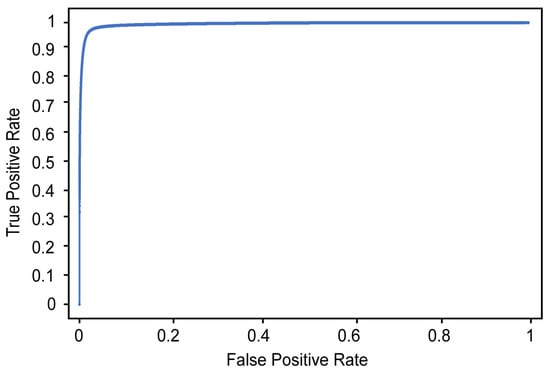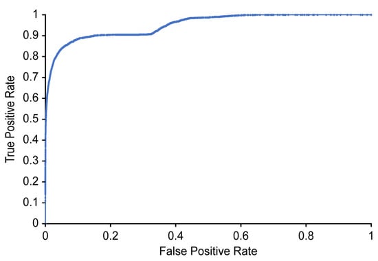 Table 3 and Figure 10 show the classification results and ROC curve, respectively, obtained for individual image frames using the CNN based on Xception. In Table 3, the recall refers to the ratio of the number of images classified as positive by the proposed detector to the number of images manually labeled as positive by the two physiatrists (where a positive label indicates that airway invasion was found). As shown in Table 3, the proposed detector achieves 74.2% recall, 97.2% accuracy, and 59.1% precision (Figure 10).