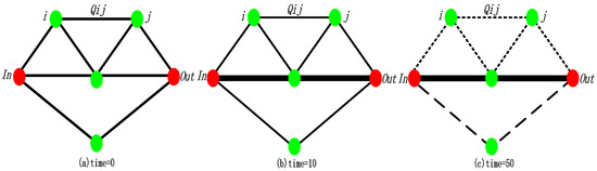 (ii) is defined as the difference between and . If the distance of the path with the largest flow is too long or similar to others, the point in will be selected as the next point by random factors. Otherwise, , which is obtained by the maximum flow, is going to be chosen as the next point. The improved rule, which is a two-way parallel selective method of flow and distance, is formulated by , as expressed in (11) and (12):