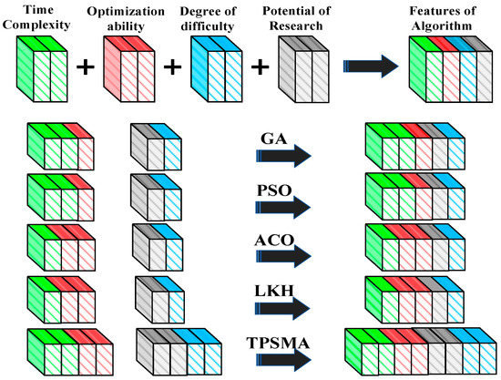 According to the above analysis, it can be concluded from Figure 15 that TPSMA has good searching ability by a unique way, and fast optimization speed by low time complexity. At the same time, TPSMA is simple in theory and easy to research, therefore it is better to study than the others. Furthermore, the research time of TPSMA is short and the algorithm is not mature enough—there are many performances and potential to be developed due to its unique optimization method and effectiveness.