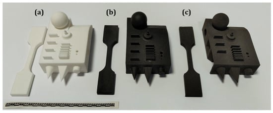 The samples produced using different LS machines are shown in Figure 6. The most significant appearance difference is the colour of the used material. In order to compensate the low power of diode lasers that are used in desktop devices, a higher absorption rate is needed and is assured by dark colour powders. Noticeable differences can be seen in the surface quality and finishing, and the PA12 Smooth model looks glossier than the other two. Moreover, some small geometric shapes were not produced, and some were built with a reduced accuracy.