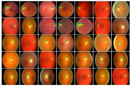 We adopted the FRCNN method for DR lesions localization. The localization outcome of FRCNN as shown Figure 3 having 16 test retinal images with a confidence score. The test results show a higher score which is greater than 0.89 and up to 0.99.
