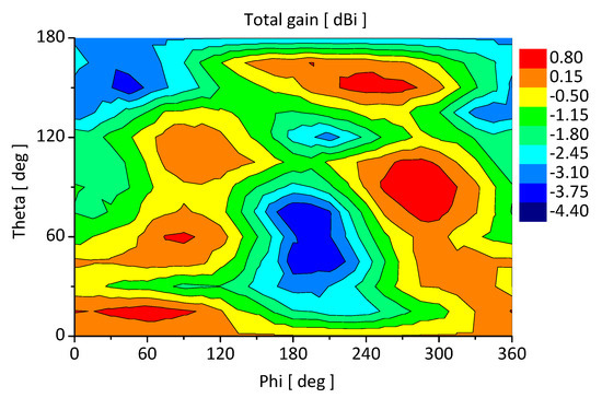 There is considerable research on the planar quasi-isotropic antenna focusing the frequencies around 900 MHz and 2.4 GHz. In Table 3, the performance of the proposed design is compared with the previously published measured results around the 2.4 GHz frequency. Table 3 shows that the proposed design is electrically smaller and lower-profile. Even though the antenna size is small, it still shows comparable performance in comparison with electrically larger quasi-isotropic antennas. This proposed compact and planar quasi-isotropic antenna could be an effective design for miniature devices.