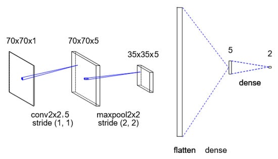The convolutional layers generate feature maps using five (2 × 2) filters followed by a Scaled Exponential Linear Units (SELU) [] as an activation function. Additionally, in the subsampling layers, the generated feature maps are spatially dissembled. In our proposed model, the feature maps in layers are subsampled to a corresponding feature map of size 2 × 2 in the subsequent layer.