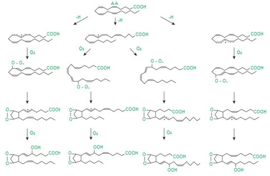 Abbreviation: AA—arachidonic acid. Diagram of isoprostane formation according to [37] as modified by the authors.
