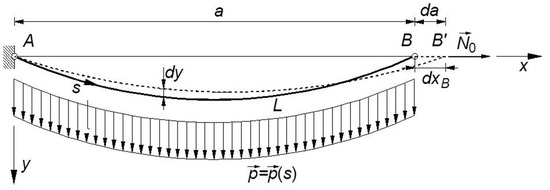 It must be emphasized that expressions (36) and (41) are much more relevant than one might assume at first sight. In fact, once assigned the initial stress, nonlinear constitutive equations , pertaining to the equivalent spring or truss element, can be accurately derived via numerical integration of Equations (36) and (41), taking into account also the chord length variation, if required.