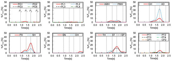 Similar findings were also observed in this study. That is, GH and AD are activated at an early stage in addition to MH (AMH, PMH), PD, and SH to move the hyoid bone anteriorly and superiorly. The onset of MH (AMH, PMH) precedes the activation of TH, which mainly contributes to the movement of thyroid cartilage, and the activity of SN is quite low. Besides, CP (CP1, CP2) and the lower region of PT (PT3, PT4) slightly exhibited twice activation. However, note that the number of muscles that can be measured by conventional methods are limited, unlike our approach.