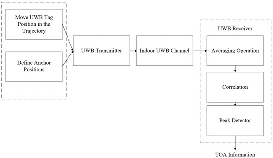 The model presented in Reference [26] is used for the UWB simulation. Figure 2 shows the flow chart of the UWB localization system.