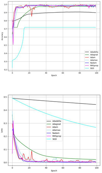 From Figure 11, the Nadam optimizer gives best localization accuracy and a lower loss value when compared to other optimizers. The SGD and Adadelta shows the worst performance. The optimizers Adam, Adamax, Adagrad and RMSProp are very similar algorithms and RMSProp was found to slightly outperform the other optimizers.