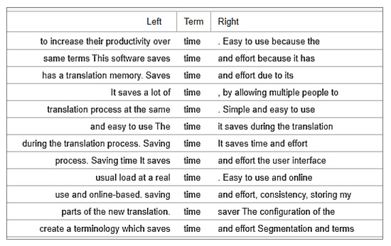 Phrase analysis showed that the most re-occurring phrases are “easy to use,” “saves time and effort,” “easy to use,” and “easy to learn.” A concordance analysis for the most frequent word is presented below in Figure 4: