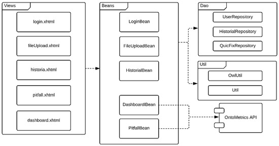 Additionally, OntologyFixer integrates an external OntoMetrics API, developed in the context of this research for computing the different metrics used to evaluate the quality of the ontologies. This API was integrated as a Maven dependency in the OntologyFixer project. OntoMetrics were structured into three modules: basic metrics, quality metrics, and symptom identification methods.