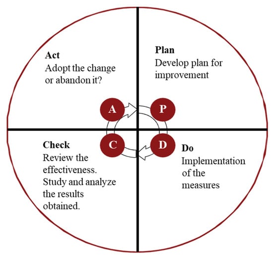 - Realyvásquez, A.; Arredondo-Soto, K.; Carrillo-Gutiérrez, T.; Ravelo, G. Applying the Plan-Do-Check-Act (PDCA) cycle to reduce the defects in the manufacturing industry. A case study. Appl. Sci. 2018, 8, 2181. [Google Scholar] [CrossRef]