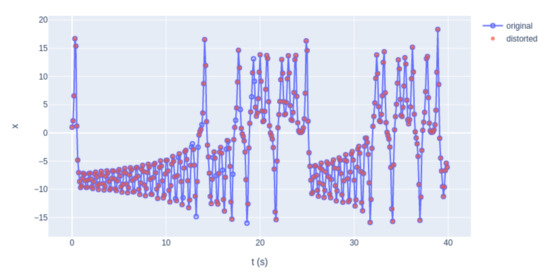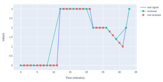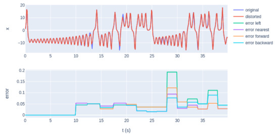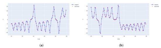 The current subsection introduces an illustrative example of the application of the proposed method to a dataset from a simple piecewise function. Suppose that the piecewise function is sampled irregularly in order to save memory applying two criteria: