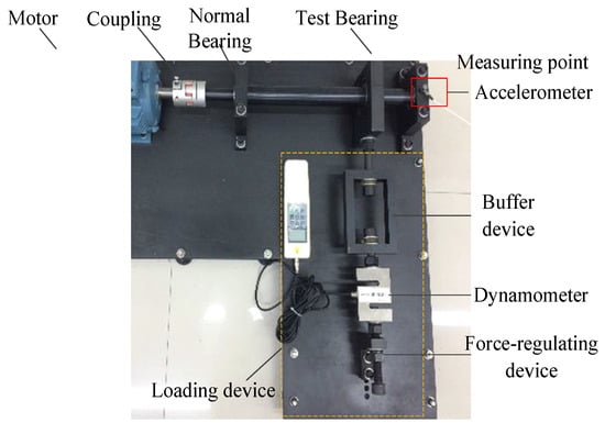 To confirm the performance of the proposed model in bearing fault diagnosis, a laboratory-made bearing fault test platform was used to collect multiple faults and vibration signals at various levels.