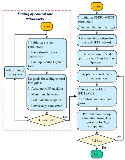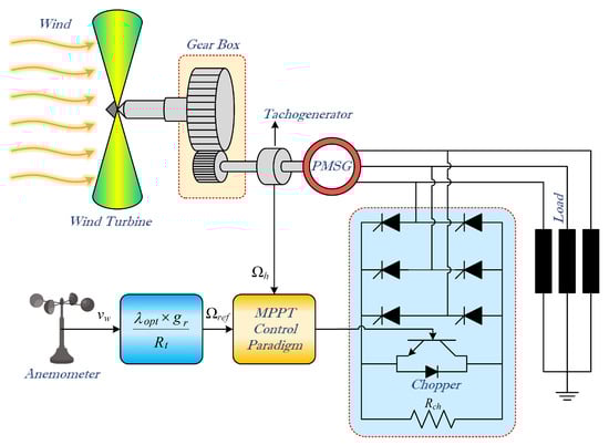The computational flow chart for implementation of the proposed MPPT strategy is depicted in Figure 4, while the closed-loop control system for PMSG–WECS is given in Figure 5.