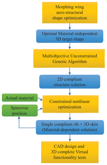 - De Gaspari, A.; Ricci, S. A Two–Level Approach for the Optimal Design of Morphing Wings Based On Compliant Structures. J. Intell. Mater. Syst. Struct. 2011, 22, 1091–1111. [Google Scholar] [CrossRef]