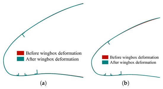 Leading edge deformation shape before and after the wing-box deformation.