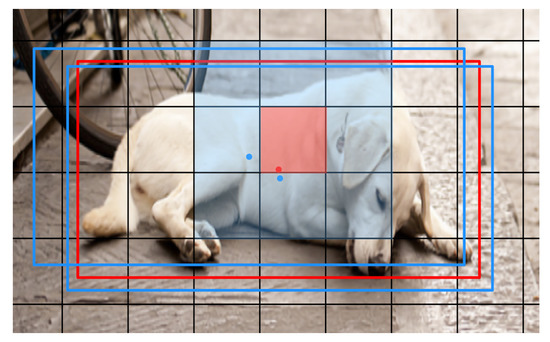 The center coordinate is limited at a certain grid by function , donates the coordinate of the upper left corner of the grid, the w, h are the width and height of anchor box which is generated by guided anchoring mechanism [36]. During training and test, we assign an anchor box to each grid. For instance, if input resolution is 416 × 416, the number of proposal is 416/32 × 416/32 + 416/16 × 416/16 + 416/8 × 416/8 = 3549.