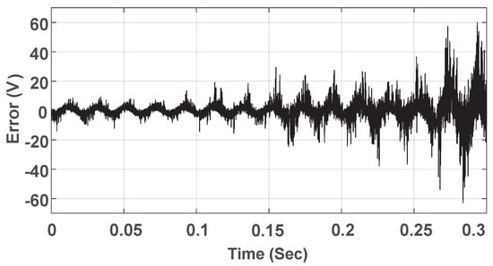 Simulation result for the (SP-CMPC): instantaneous voltage error during sweeping the weighting factor in the same manner as the above figure using the CF in Equation (21) with the conventional tracking system.