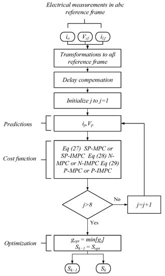 where is the sampling time. This model is used to predict the filter voltages and currents for every possible input voltage. The selection of the optimal input voltage depends on the CF. In the next subsections, the conventional FCS-MPC algorithm and the proposed one will be discussed.