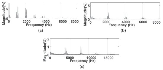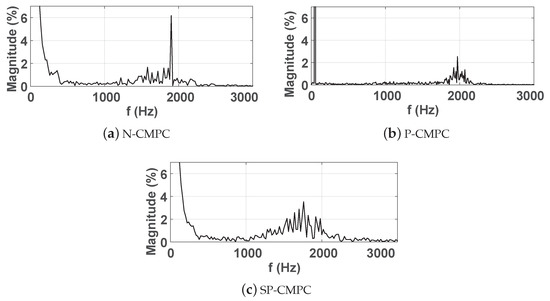 Figure 9. Different frequency concentrations using periodic control with conventional CMPC. (a) P-CMPC at 1 kHz; (b) P-CMPC at 2 kHz; and (c) P-CMPC at 4 kHz.