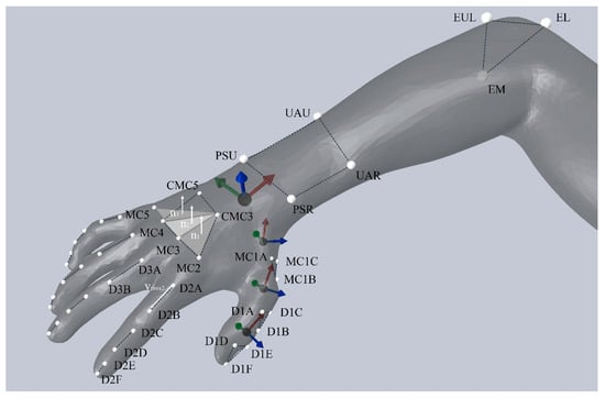 - Metcalf, C.; Notley, S.; Chappell, P.; Burridge, J.; Yule, V. Validation and application of a computational model for wrist and hand movements using surface markers. IEEE Trans. Biomed. Eng. 2008, 55, 1199–1210. [Google Scholar] [CrossRef]
