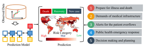 (B) Researches on COVID-19: The recent COVID-19 outbreak has motivated many researchers to help and find a way to recover from the pandemic. Rao et al. [23] proposed methods to detect COVID-19 patients using a mobile phone. Yan et al. [24] built a predictive model to identify early detection of high-risk patients before their health status is transformed from mild to critically ill. In recent times, numerous research articles have been published on epidemic prediction of the coronavirus pandemic [25,26,27,28,29,30,31,32,33,34]. Researchers designed new paradigms of AI-driven tools [35,36] that combine ML algorithms and different modalities of data. An improved adaptive neuro-fuzzy inference system (ANFIS) methodology is proposed in [37]. The algorithm is based on an enhanced flower pollination algorithm (FPA) by using the salp swarm algorithm (SSA) to estimate confirmed cases in the next 10 days. Li et al. [38] developed a regression model to calculate the exponential growth of COVID-19 infection based on the total number of daily diagnoses cases outside China. Analysts in [39] obtained projections from 10 familiar machine learning and statistical ecological niche models against the large-scale climatology variation.
